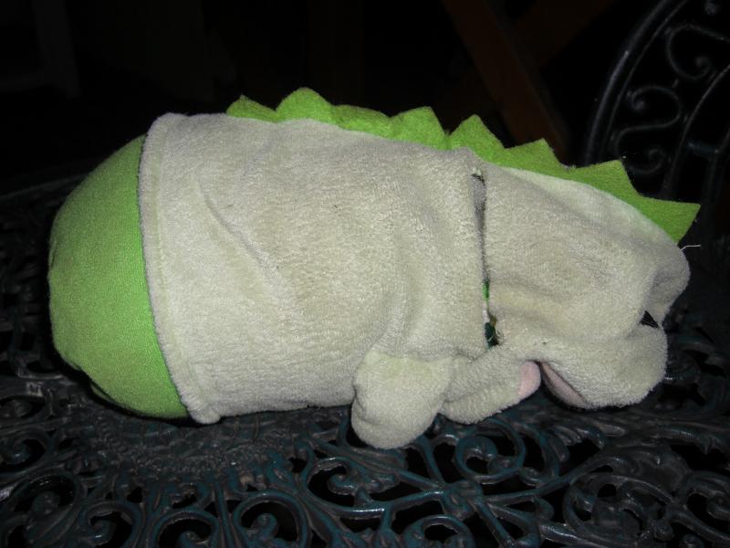 前の恐竜さんは、中の綿を政宗に抜き取られて無惨な姿に…。