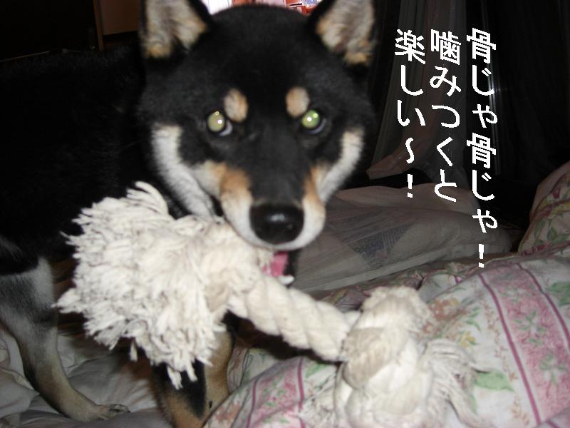 ホネを渡すとしばらくは噛みついて遊んでます。